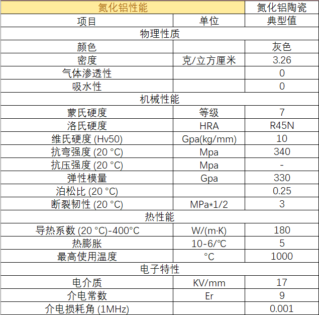 | 材料成分 | 氮化鋁陶瓷 |